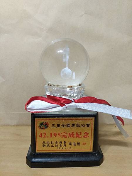 上圖是2014三重馬的完賽獎座,也是一個不屬於我的紀念品...